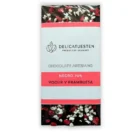 Tableta de chocolate negro 70%. Selección de origen Ecuador, Costa de Ivory y Sao Tomé-and-Principe. Chocolate de aroma floral, amargor intenso y notas de madera enriquecido con yogur y tracitos de frambuesa.