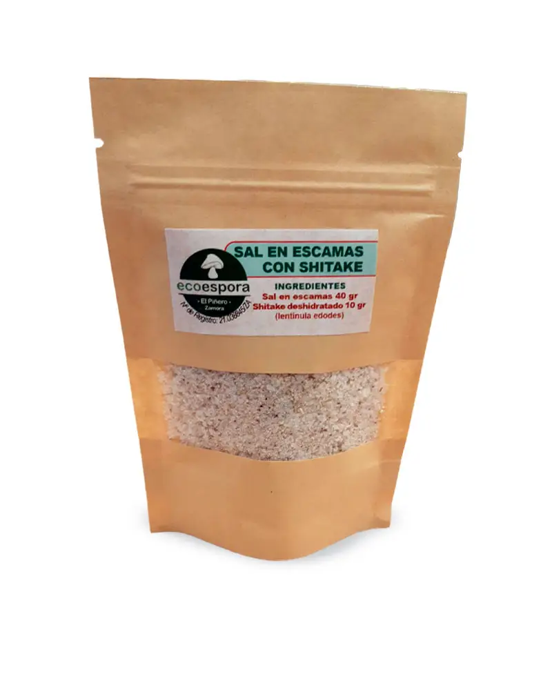 Sal Maldon en escamas con Shiitake; sal de sabor muy potente a shiitake para utilizar con carnes ,verduras, rissottos, huevos…