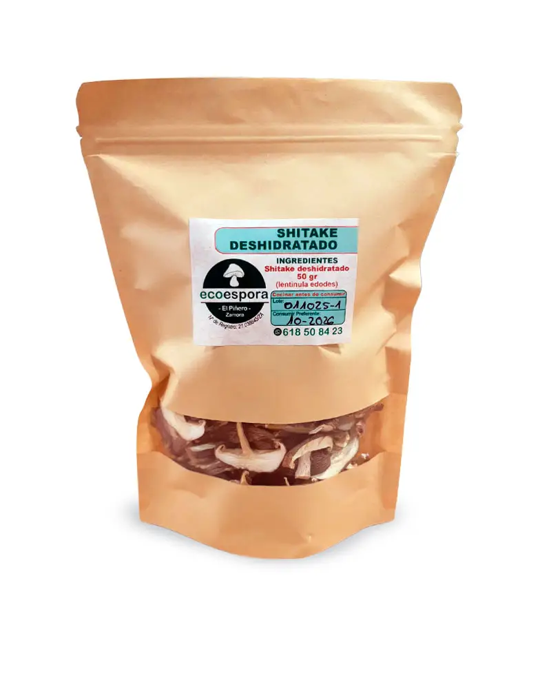 Shiitake procedente de un pequeño cultivo sostenible; deshidratadas a muy baja temperatura para que conserva todas las propiedades, textura y sabor.